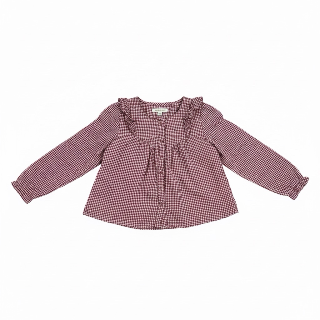 Son motif vichy bordeaux et blanc et ses volants sur les épaules en font une pièce adorable, parfaite pour un look rétro.