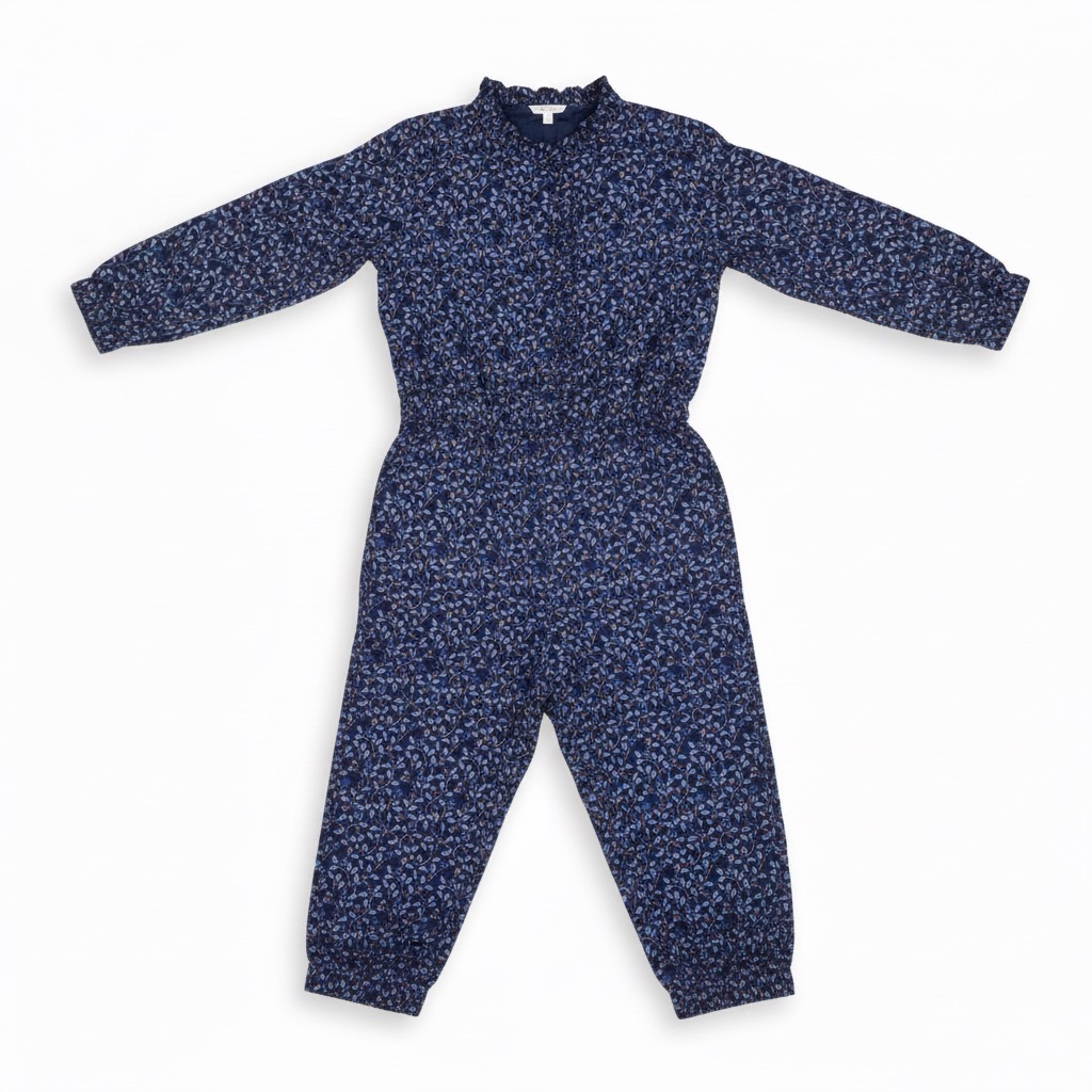 Combinaison Fleurie Chic : Un look tout-en-un élégant avec son col volanté et son imprimé fleuri bleu marine. La taille élastiquée assure un confort maximal et un style raffiné en un clin d’œil.