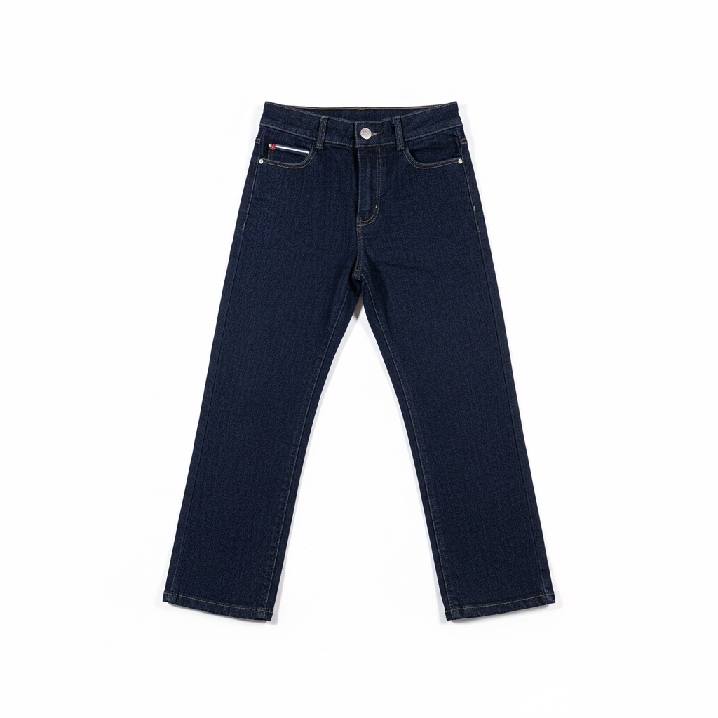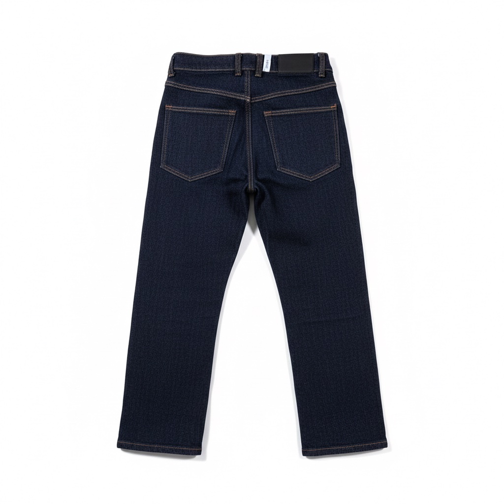 Jean bleu foncé, coupe droite classique. Dispose d’une taille ajustable de l’intérieur. Le vêtement parfait pour un style durable et soigné.