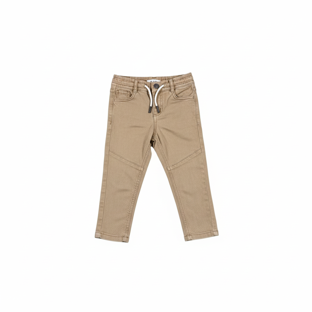 Ce jean marron allie style et confort avec sa coupe moderne et ses surpiqûres aux genoux. Il dispose d’une taille ajustable par cordon pour un maintien parfait tout au long de la journée.
