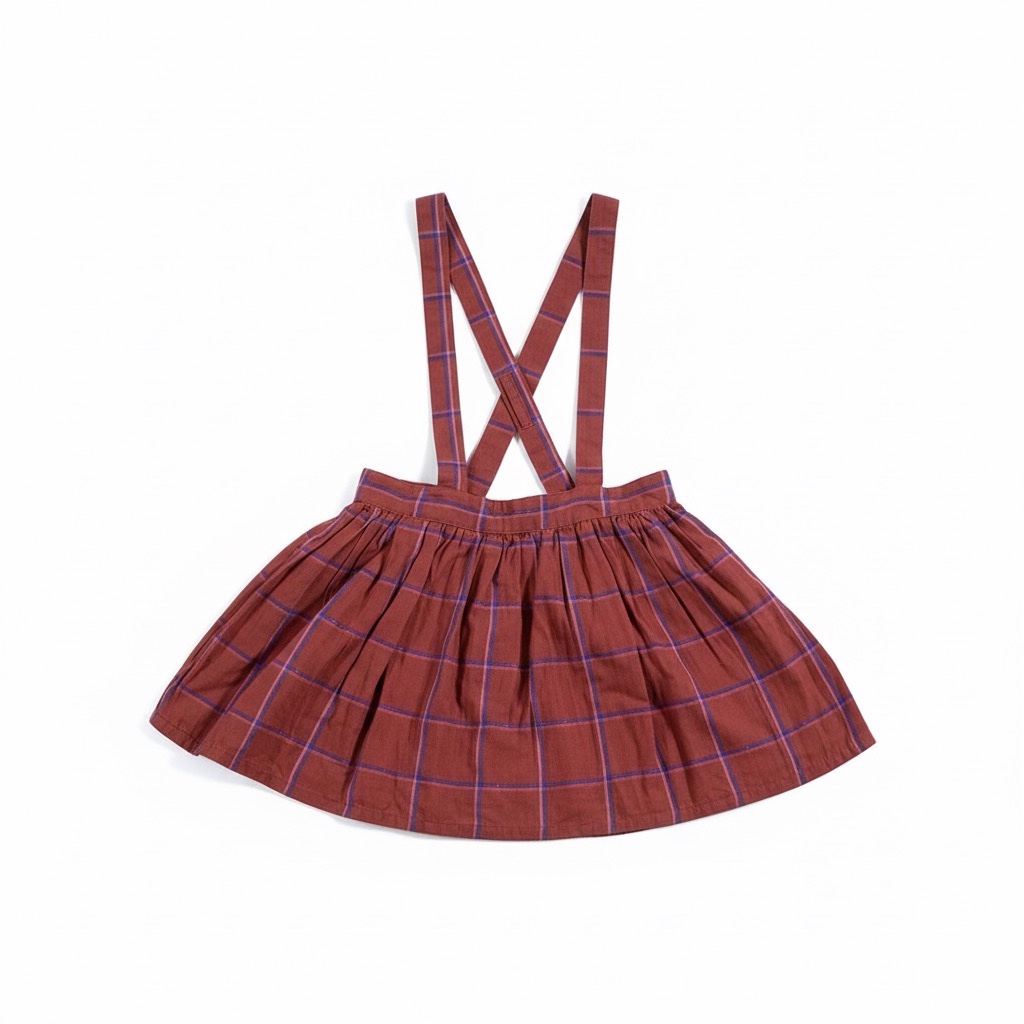 Charme Rétro Garanti : Craquez pour cette jupe écossaise rouge et bleue à bretelles ! Un look tendance et irrésistible, ajustable à la taille pour un confort parfait.