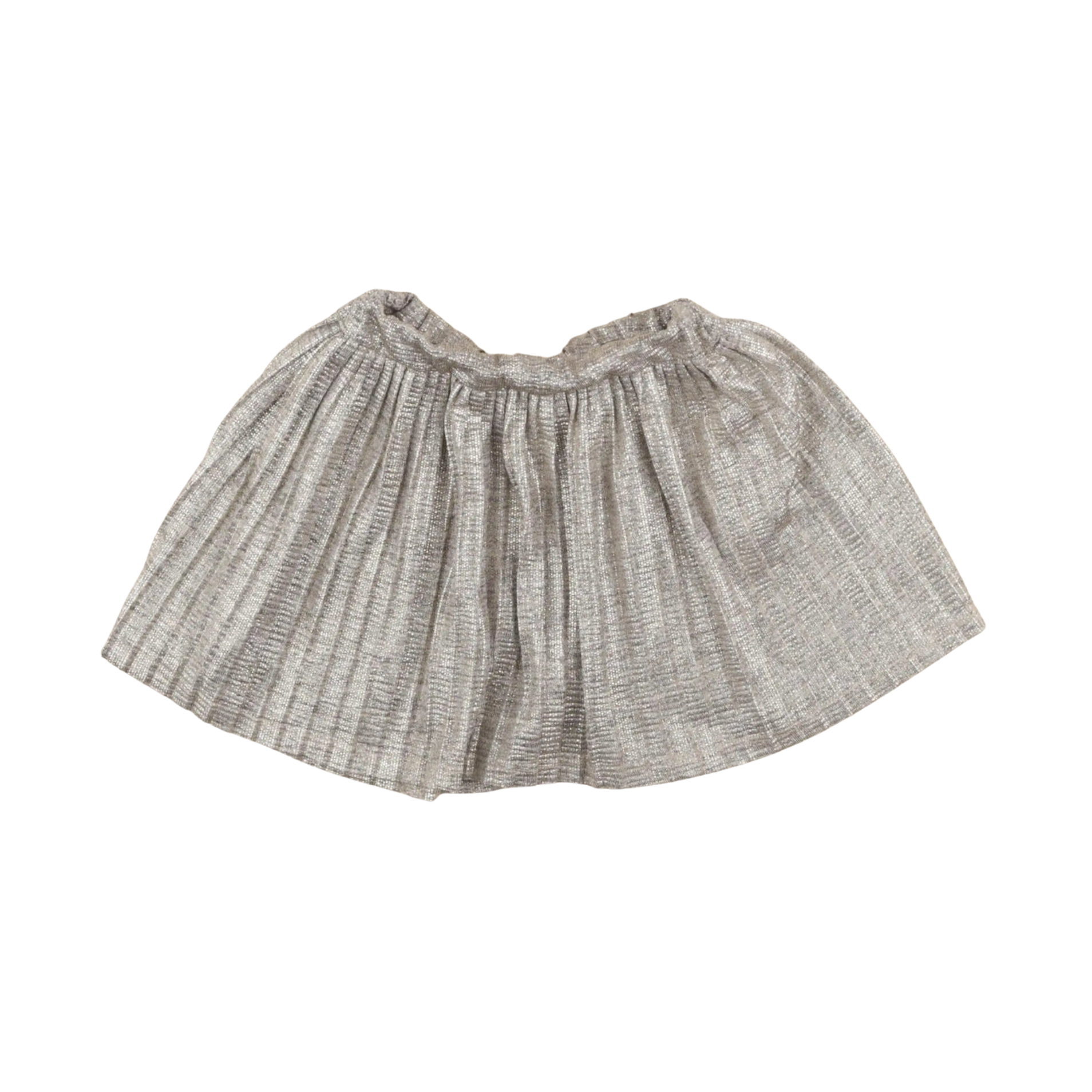 Brillez lors des grandes occasions avec cette magnifique jupe plissée au fini métallisé argenté. Sa coupe évasée offre un mouvement gracieux.