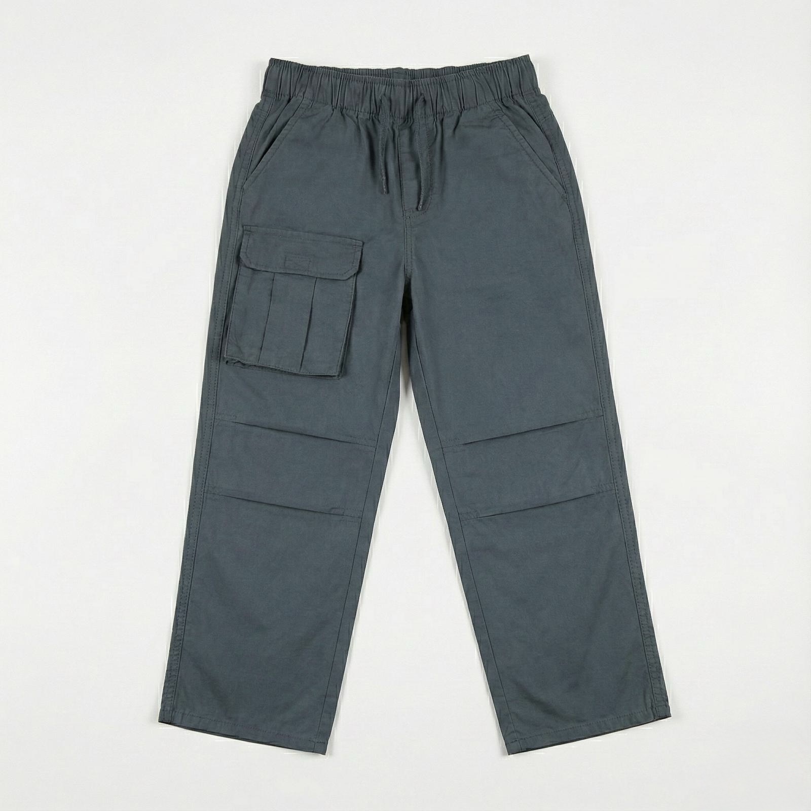 Pantalon en toile kaki. Taille élastiquée et ajustable, avec poche cargo latérale. Le vêtement idéal pour un look décontracté et robuste.