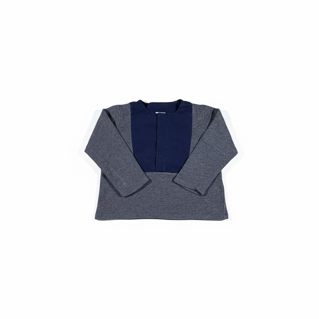 Haut gris/marine avec design color-block épuré. Matière douce, manches longues. Parfait pour un look tendance et confortable.