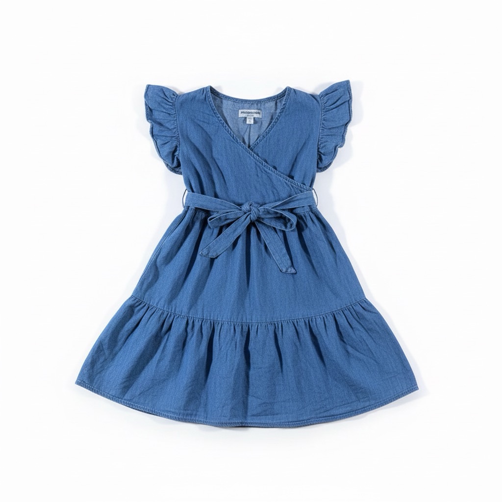 Robe Vertbaudet en jean clair, avec un haut façon cache-cœur qui lui apporte une touche délicate et élégante. Sa ceinture ajustable permet un maintien parfait et ajoute du charme à la silhouette. Une pièce douce et pratique, idéale pour un look casual chic.
