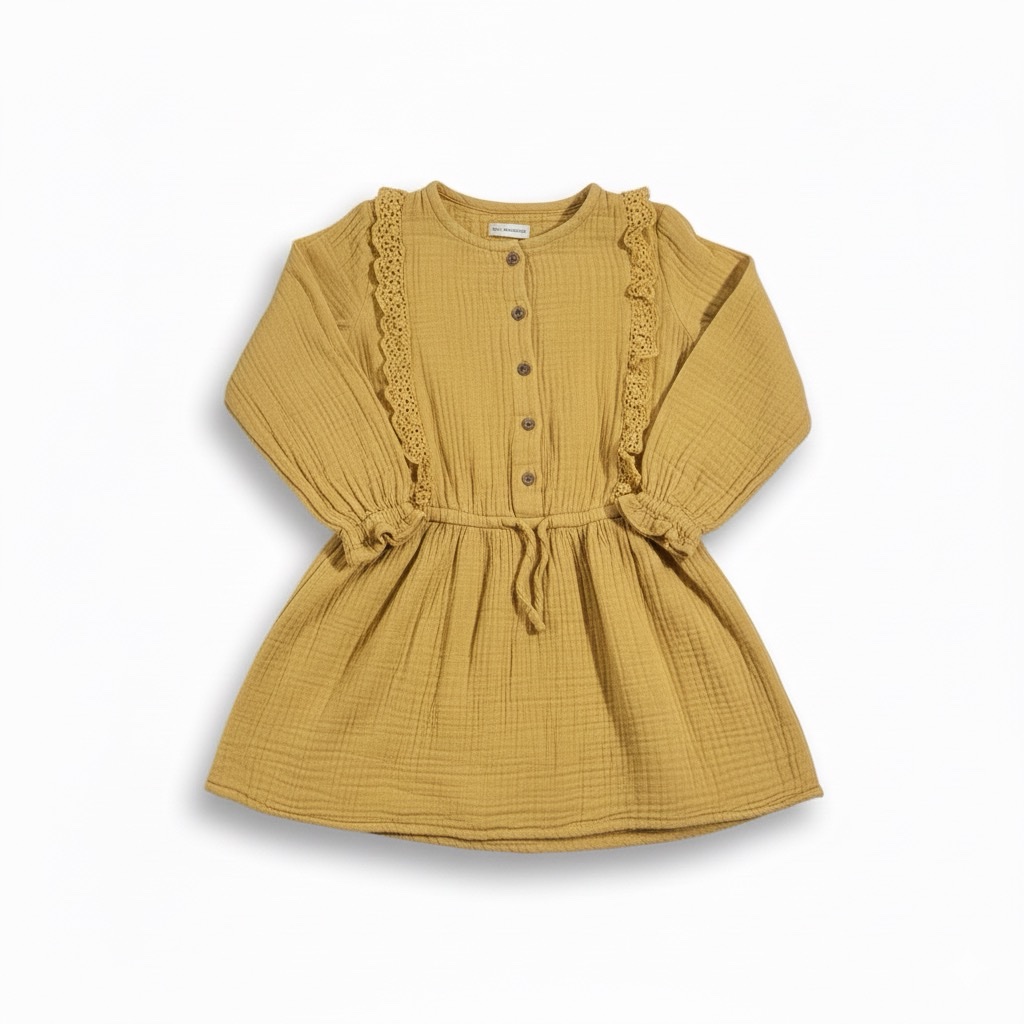 Sa couleur moutarde tendance, ses volants en dentelle et sa taille ajustable en font une pièce irrésistible pour toutes les saisons !