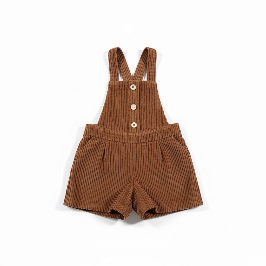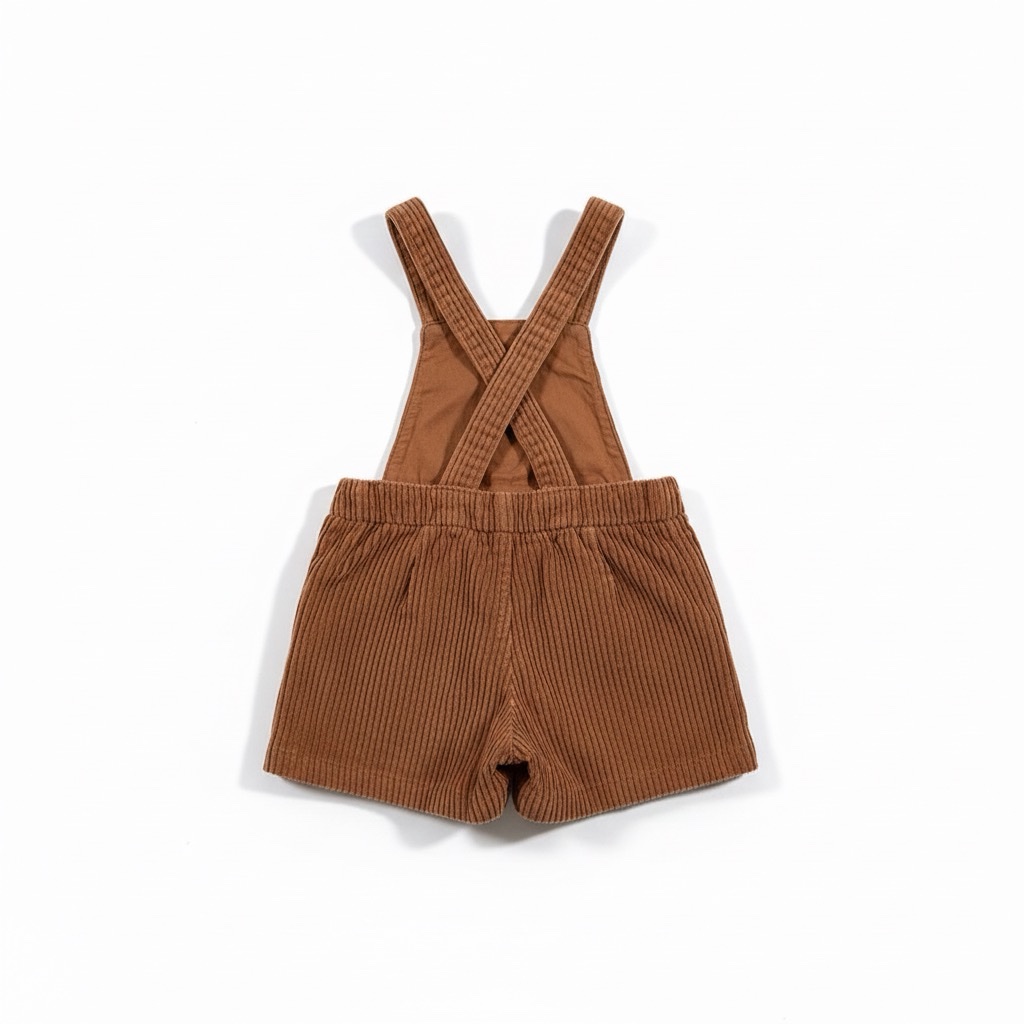Salopette version short en velours côtelé marron, à la fois tendance et confortable. Avec son style rétro plein de charme, elle se porte facilement avec un t-shirt ou un petit pull pour un look adorable et pratique au quotidien.