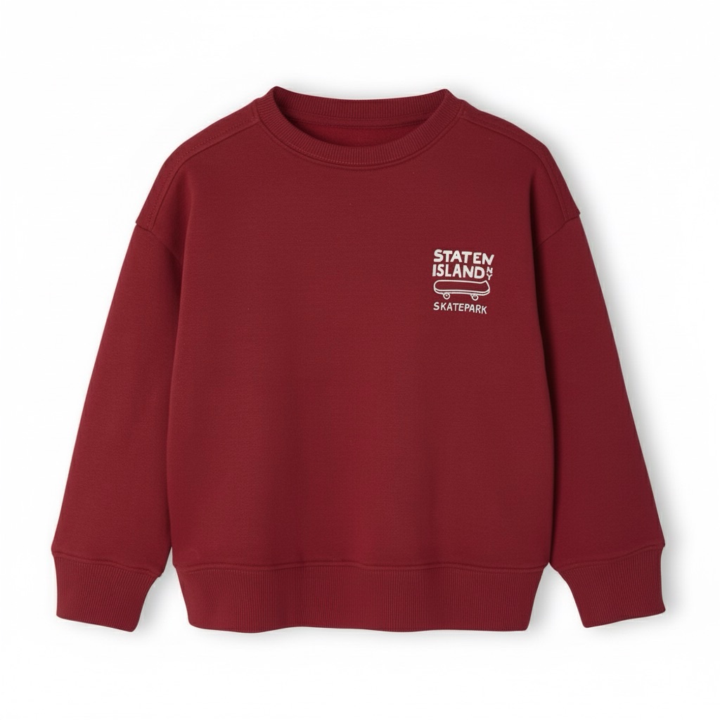 Ce sweat-shirt confortable de couleur rouge présente une coupe décontractée et des bords-côtes aux poignets et à l’ourlet. Il est orné d’un motif simple sur la poitrine.