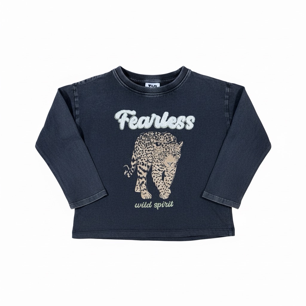 T-shirt manches longues Tape-à-l’Œil, gris foncé, décoré d’un adorable léopard sur le devant. Doux, confortable et plein de caractère, il apporte une touche fun à la tenue tout en restant facile à porter au quotidien.